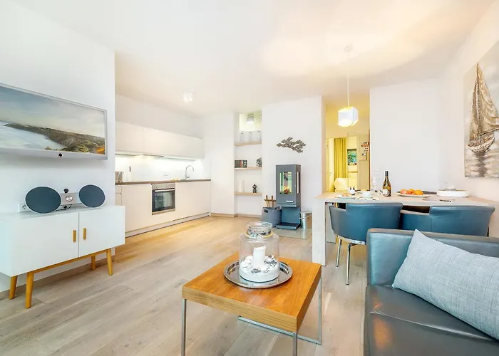 この60m²のアパートはゼーブリュケ・ゼリン少し離れたの場所にあります。 ゼリンの本当の中心部に行くには、10分歩く必要があります。 Strandvilla Strandgutアパートはゼー橋から1.4キロメートルの場所にあります。